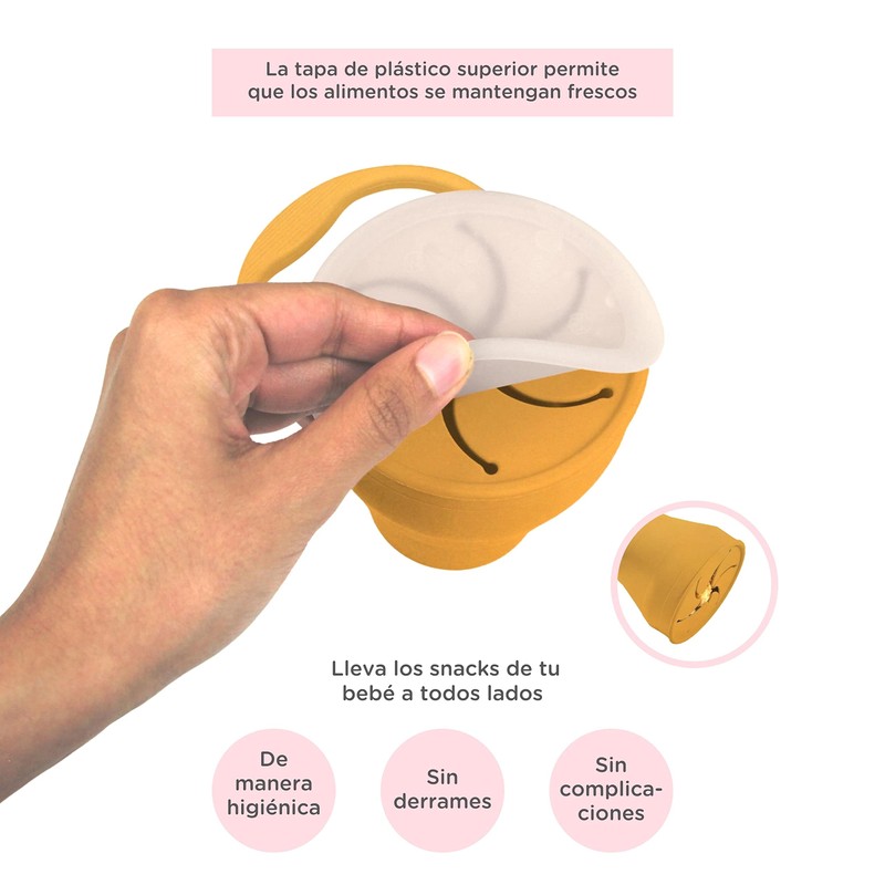 Nap Baby Contenedor Retractable con tapa para Snacks, Silicón Suave de Grado Alimenticio, Libre de BPA, Evita Derrames y Accidentes, ideal para alimetación complementaria de Bébes y Toddlers - Mango