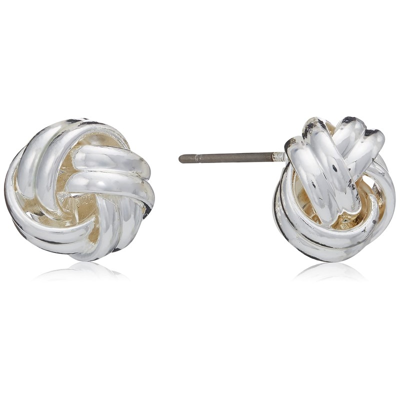 - SILVER-TONE KNOT STUD EARRINGS: A simply elegant way to dress up your look, these earrings feature a silver-tone knot design with post backs.