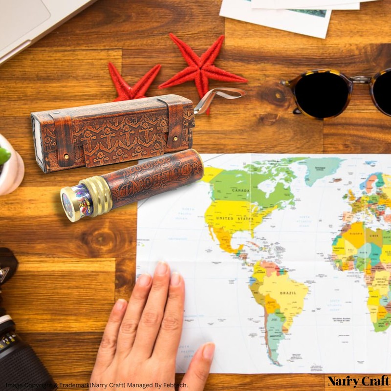 NARRY CRAFT Vintage Nautical Kaleidoscope with Leather Case – Handcrafted Antique Brass Telescope Kaleidoscope