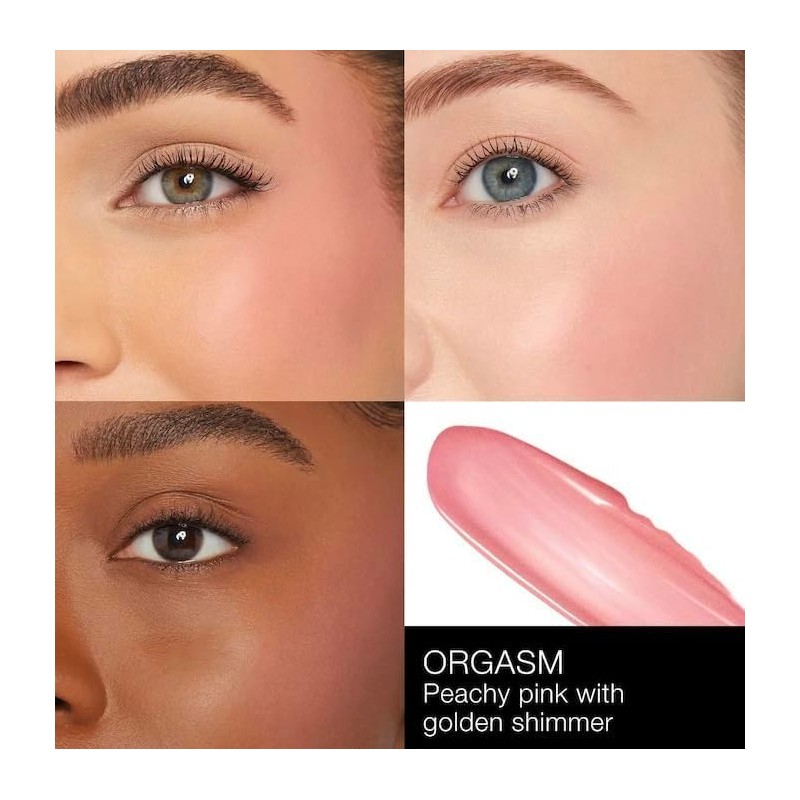 - RADIANT HYDRATION: NARS Afterglow Liquid Blush in Orgasm is a lightweight blush with a peachy pink hue and golden shimmer. It deeply nourishes the skin, providing eight hours of hydration for a dewy complexion.