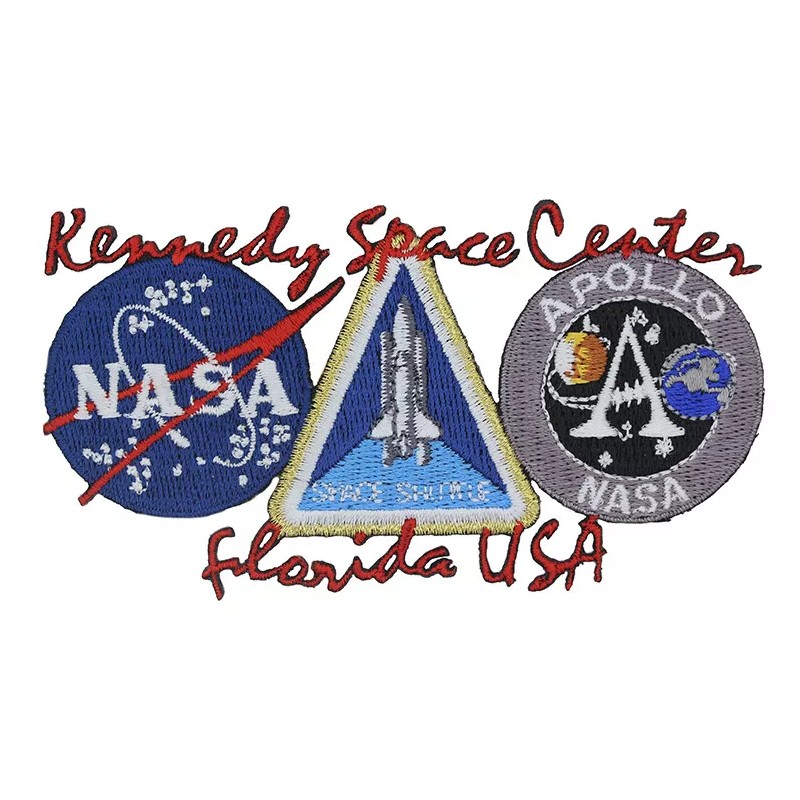 - This patch reflects the Kennedy Space Center scripted above the NASA Meatball Emblem nestled next to the Space Shuttle emblem and followed by the Apollo emblem in Florida, USA.