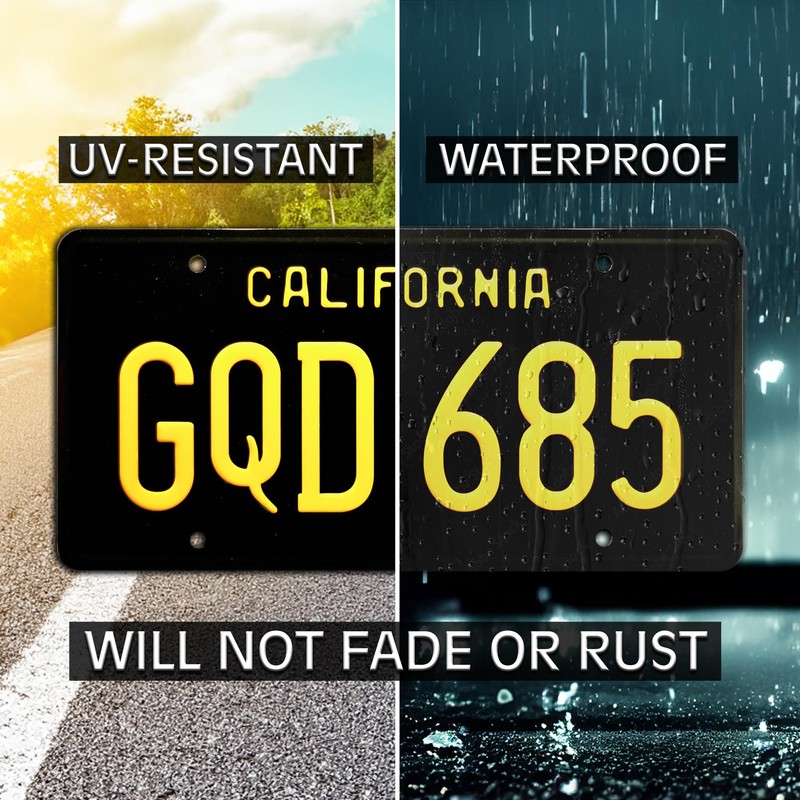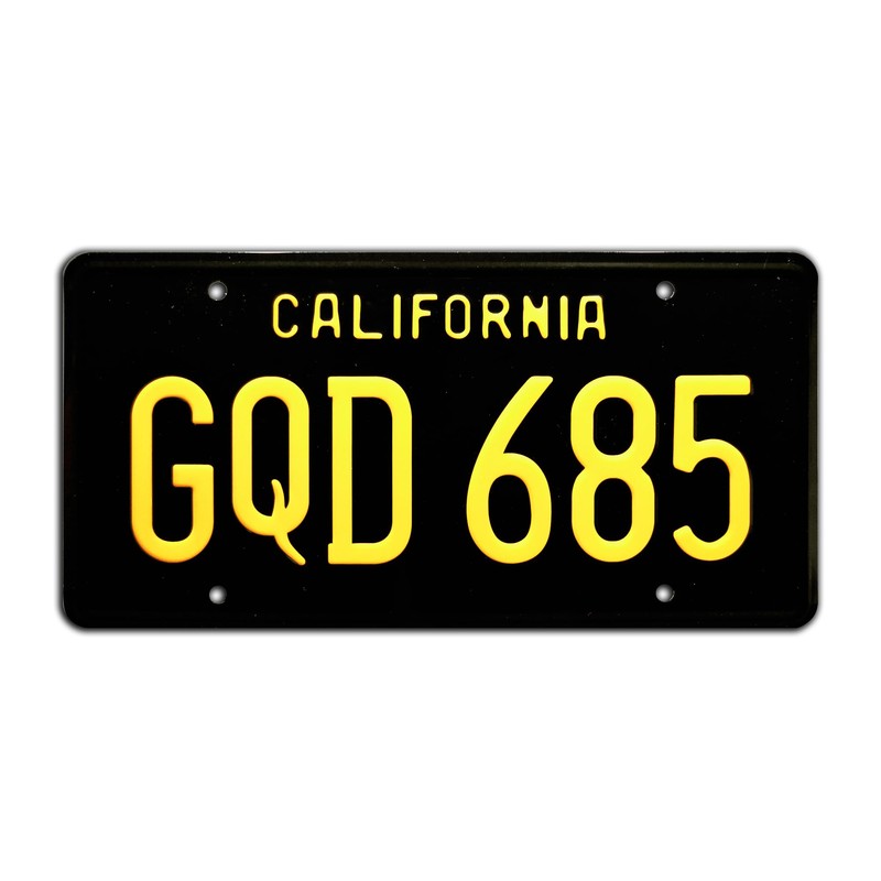- California license plate style and colors (Black & Yellow)