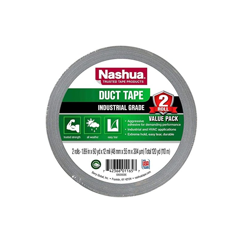 • Nashua 398 Professional-Grade Duct Tape is an industrial-grade duct tape used for hanging and patching polyethylene sheeting; duct sealing and HVAC contractor uses; maintenance applications in manufacturing environments; seaming and securing underlayment materials; sealing polyethylene waste disposal bags; color coding; general repair; and bundling, patching, and mending.