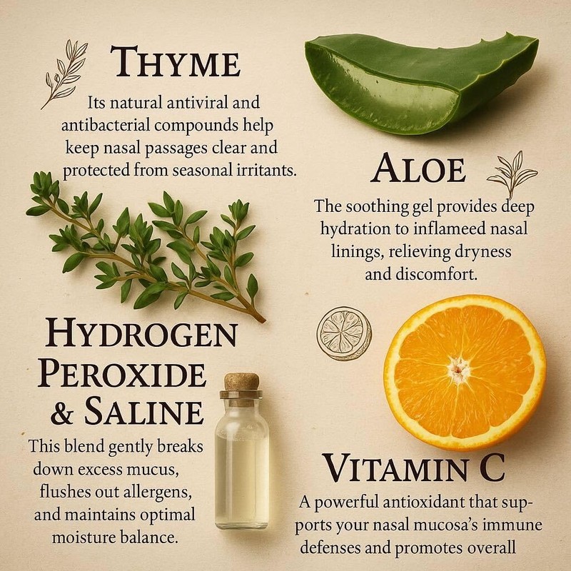 - Experience the natural relief and support your nasal passages deserve with Doc Anderson’s Naso-Thyme nasal rinse spray. Formulated with a synergistic blend of both natural and botanical ingredients that include extracts of Aloe and Thyme.
