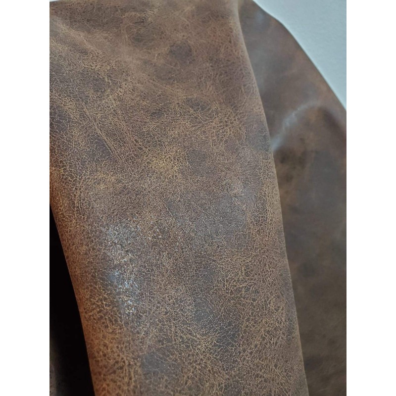 NAT Leathers | Brown Distressed Crazy Horse Oily Faux Vegan Leather PU {Peta Approved Vegan} | 3 yard (108 inch length x 54 inch wide) cut by yard Synthetic Pleather 0.9 mm Vinyl Upholstery | 108"X54"
