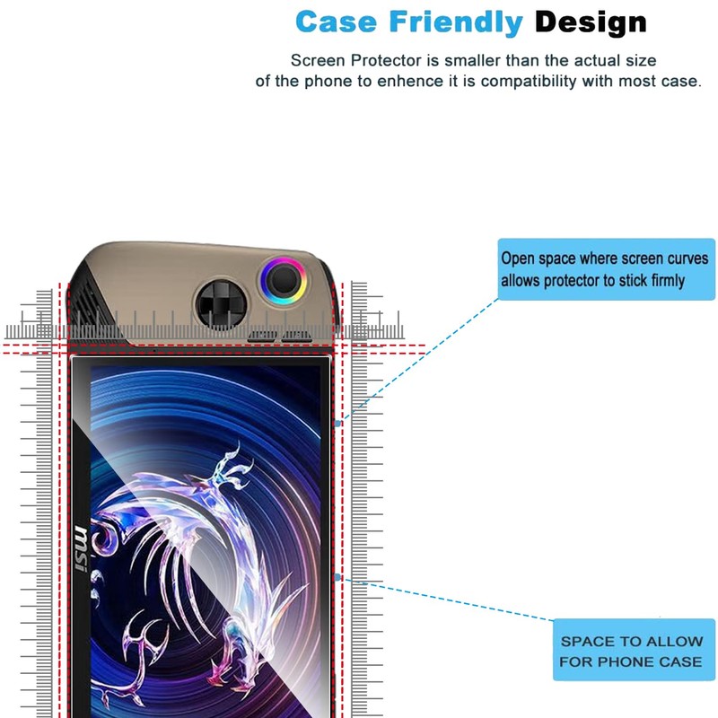 • [Compatibility] The screen protector Only Compatible with MSI Claw 8 AI+ A2VM,Not compatible with other Retro Handheld Game Consoles !!! Please confirm your carefully before purchase.It is 100% brand new,precise laser cut tempered glass, exquisitely polished,2.5D rounded edges makes curved edges of the screen protector to perfectly fit curved corners,the space between the Game Consoles and the screen protector enables the proper space for the installation of most Game Consoles cases.