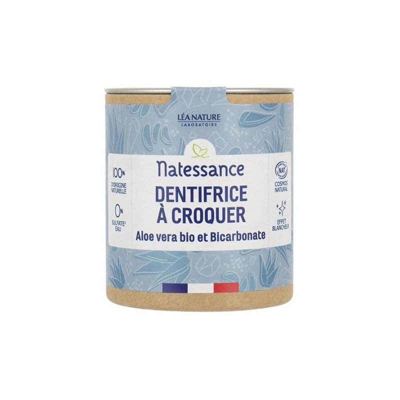 Natessance Chewable Toothpaste Aloe vera Bicarbonate or Aloe vera Menthol 80 Tablets is a chewable toothpaste with soothing, whitening and refreshing properties. This chewable toothpaste is a treatment designed with aloe vera it is used for its soothing, healing and moisturizing properties . This chewable toothpaste provides good oral hygiene .