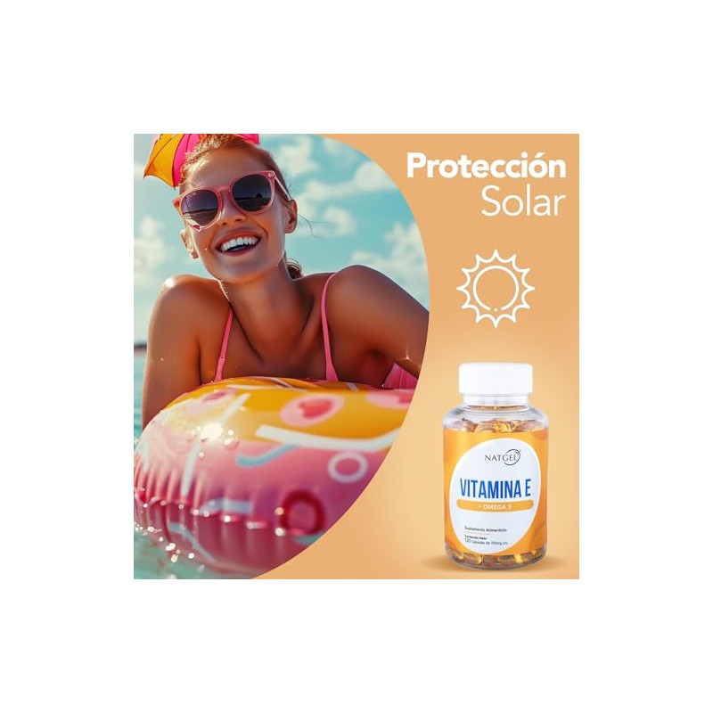NatGel Vitamina E con Omega 3 | Antioxidante para Salud de la Piel y Sistema Cardiovascular | 120 Capsulas Softgels de 700mg
