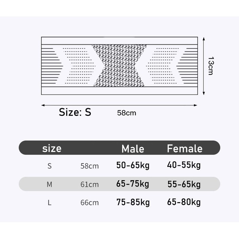 - Product Specifications: Waist (Reference Weight): S: 22.8 inches (58 cm); Women's: 110.2 - 143.3 lbs (50 - 65 kg); Men's: 88.2 - 121.3 lbs (40 - 5M:61cm(Women:65-75kg;Men:55-65kg) L:66cm(Women:75-85kg;Men:65-80kg)