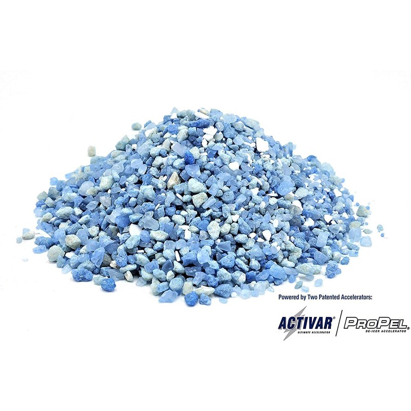 - SIZE: Optimized particle size for controlled spreading, allowing you to melt more with less cost. National Blue Ice Melt also contains anti-caking agents that ensure easy flow for ice melt spreaders and longer storage life. Contains a water soluble non-staining coverage indicator. Making it easier to see when spreading.
