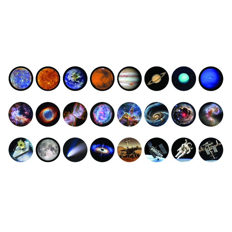 - A total of 24 slides of planets, galaxies, astronauts etc.