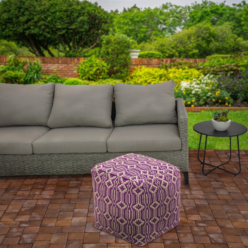 - Perfect as a portable footrest, seat or table top, this stylish decor piece features a stylish, repeating pattern and a lavender purple color