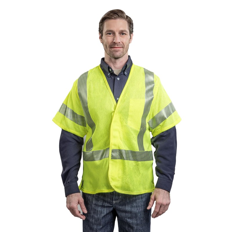 National Safety Apparel V00HA3VXL Flame Resistant Hi-Vis Mesh Safety Vest, Class 3, X-Large, Fluorescent Yellow