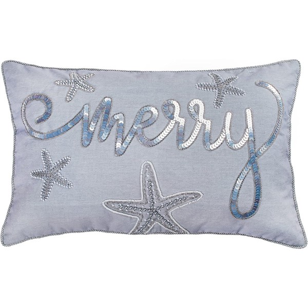 - Includes one blue colored pillow Christmas themed embroidered details measuring 14"x22"x2"