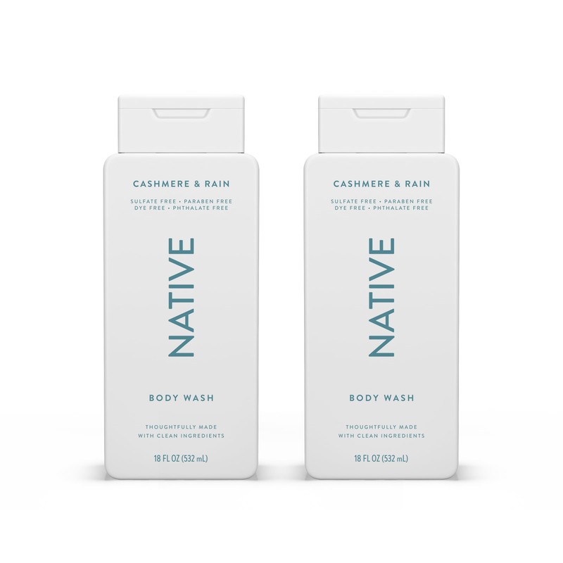 Native Native Body Wash Contains Naturally Derived Ingredients | For Women & Men, Sulfate, Paraben, & Dye Free Leaving Skin Soft and Hydrating | Cashmere & Rain 18 oz - 2 Pk