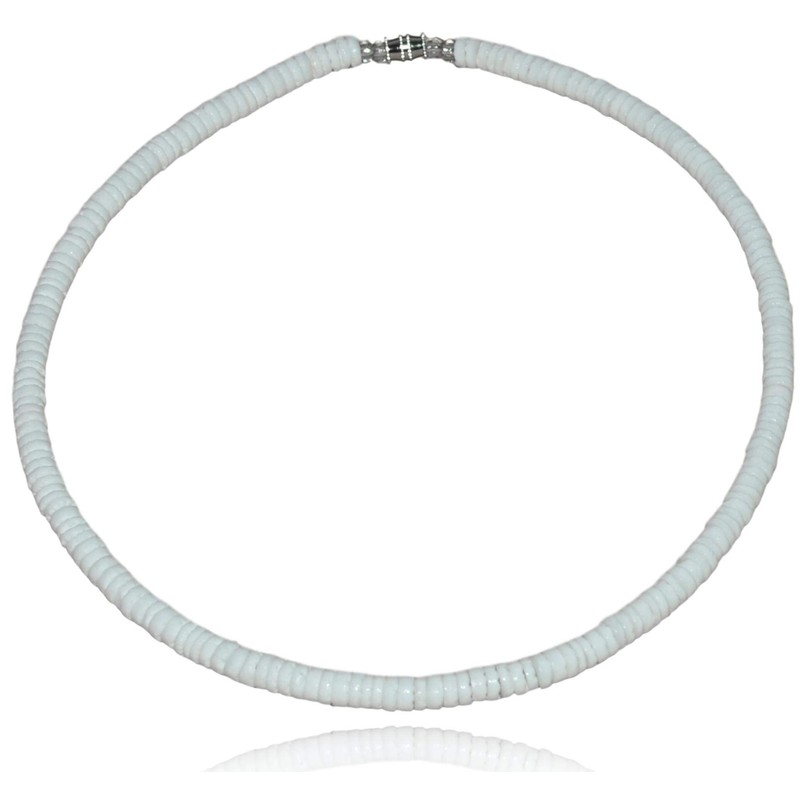 Native Treasure - 18" inch Mens and Womens Smooth White Clam Heishe ARK Shells, Tropical Jewelry Summer Beach Surfer Necklace From the Philippines - 5mm (3/16")