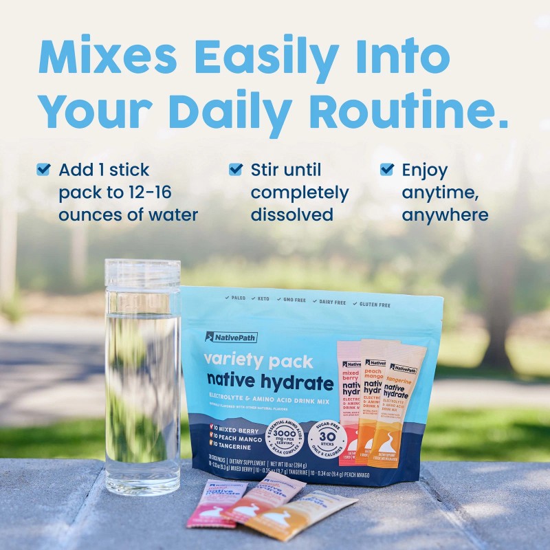 THE NATIVEPATH PROMISE – Native Hydrate is crafted with premium ingredients to support your wellness goals. It’s keto-friendly, paleo-friendly, gluten-free, dairy-free, grain-free, and seed oil-free, so you can hydrate with confidence. Get On The Path, Stay On The Path.
