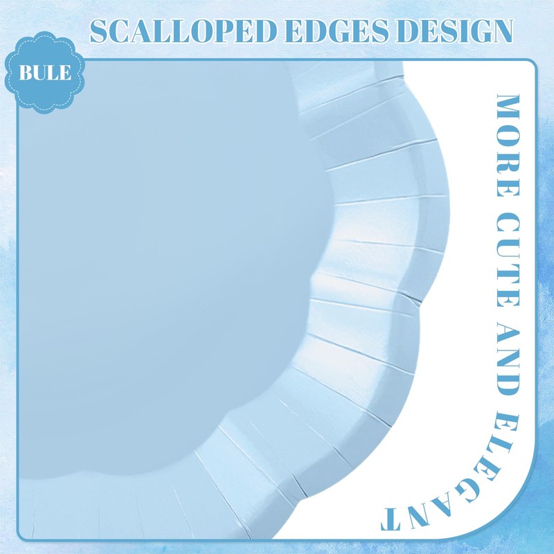 - Wide Application: Scalloped blue cake plates have wide applications, suitable for birthday, baby shower, graduation, picnics, ceremonies and other parties.They can also be used for daily family dinners and picnics