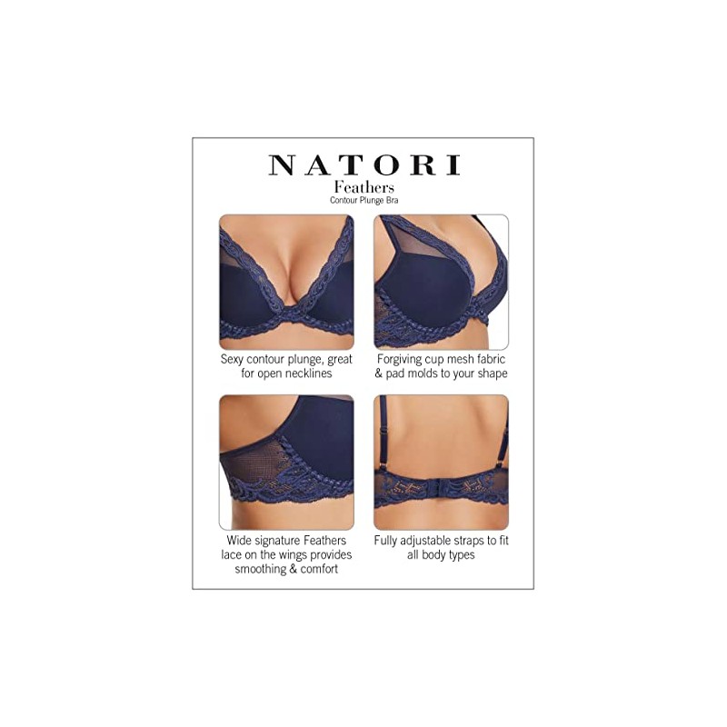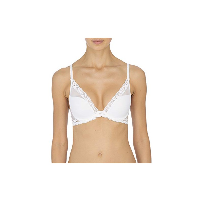 Natori Women's Feathers Contour Plunge Bra, White, 36C