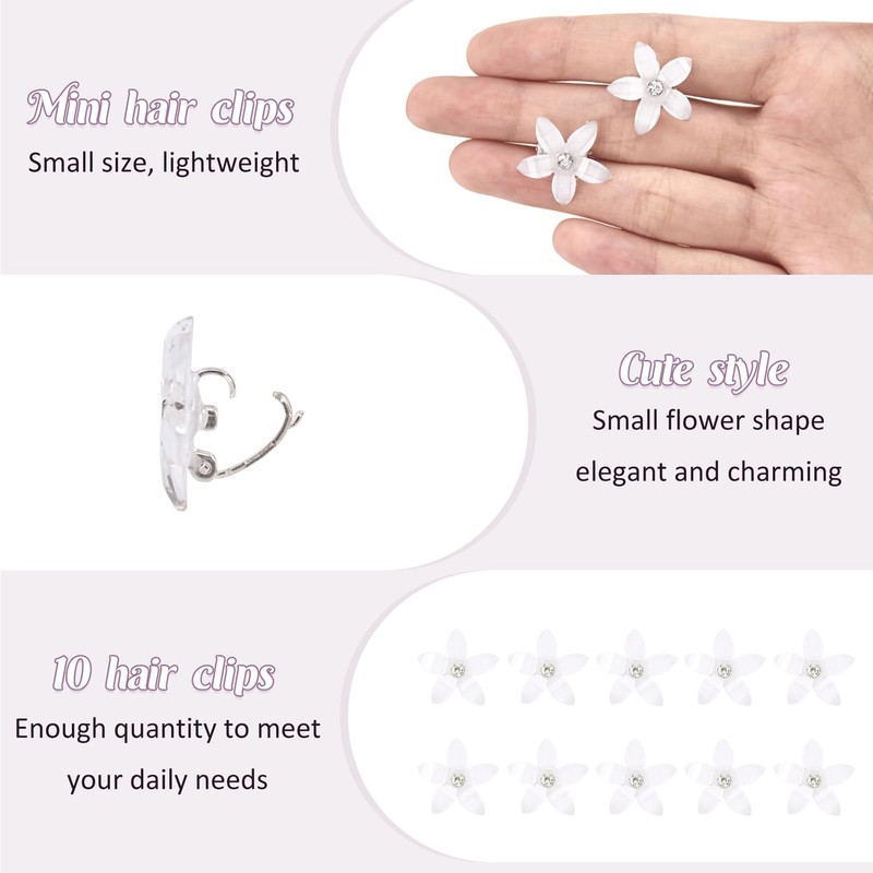 NATOSU 20 Pieces Mini Flower Hair Clips, Cute Rhinestone Hair Pins, Small Decorative Hair Clips, Wedding Hair Clips, White Flower Hair Clips, Bridal Hair Accessories for Girls and Women