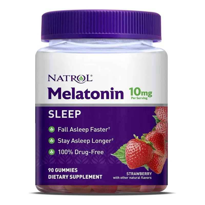 Natrol, Melatonina, Fresa, 10 Mg, 90 Gomitas, Melatonina Es Una Ayuda Para Dormir Nocturna Que Ayuda Con El Insomnio Ocasional. Para Amanecer Fresco