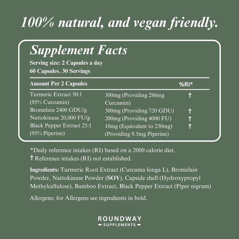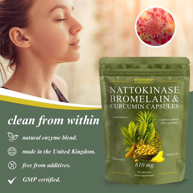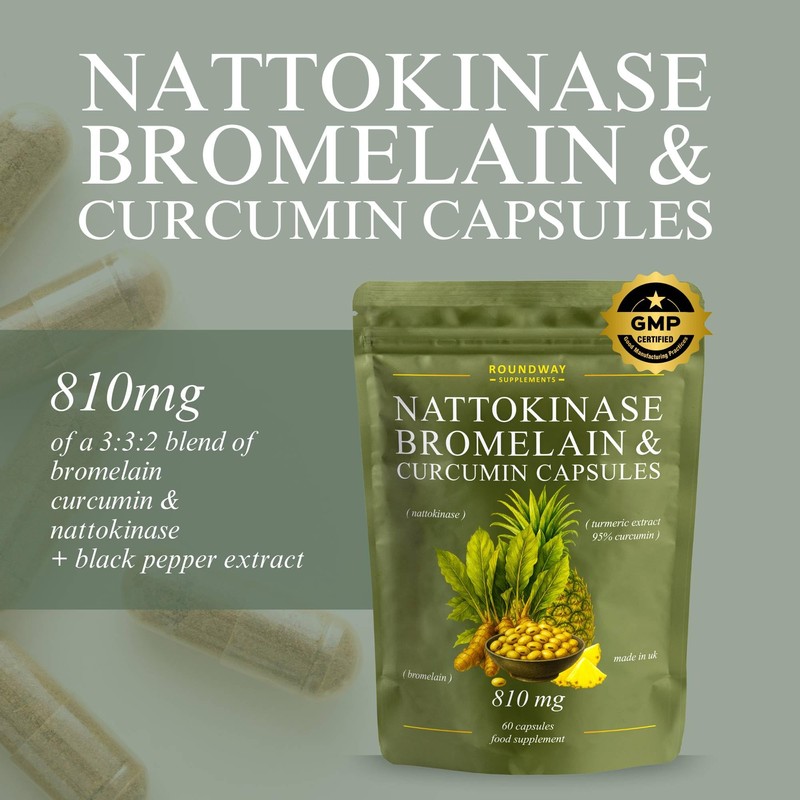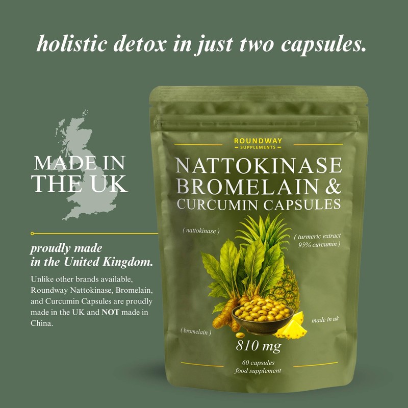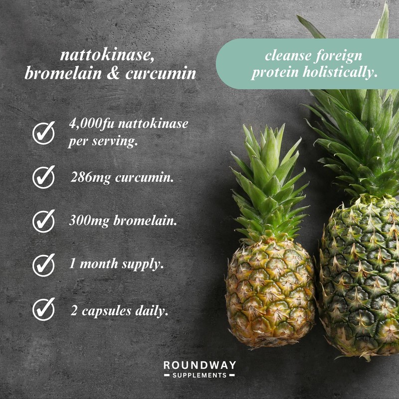 Nattokinase Bromelain Curcumin | Foreign Protein Cleanse with Black Pepper Extract | High Strength | 60 Vegan Capsules, Made in The UK by Roundway Supplements