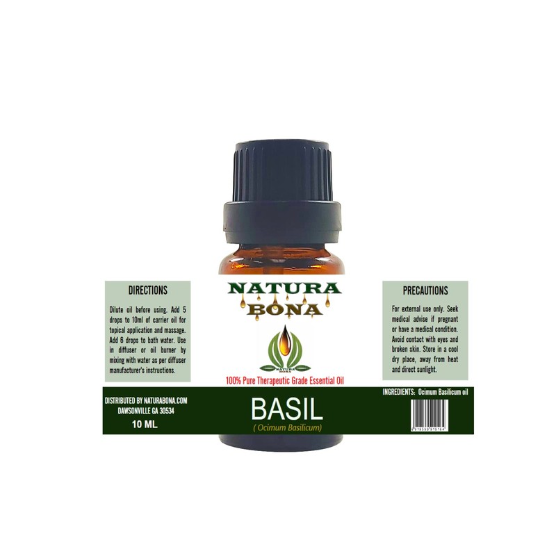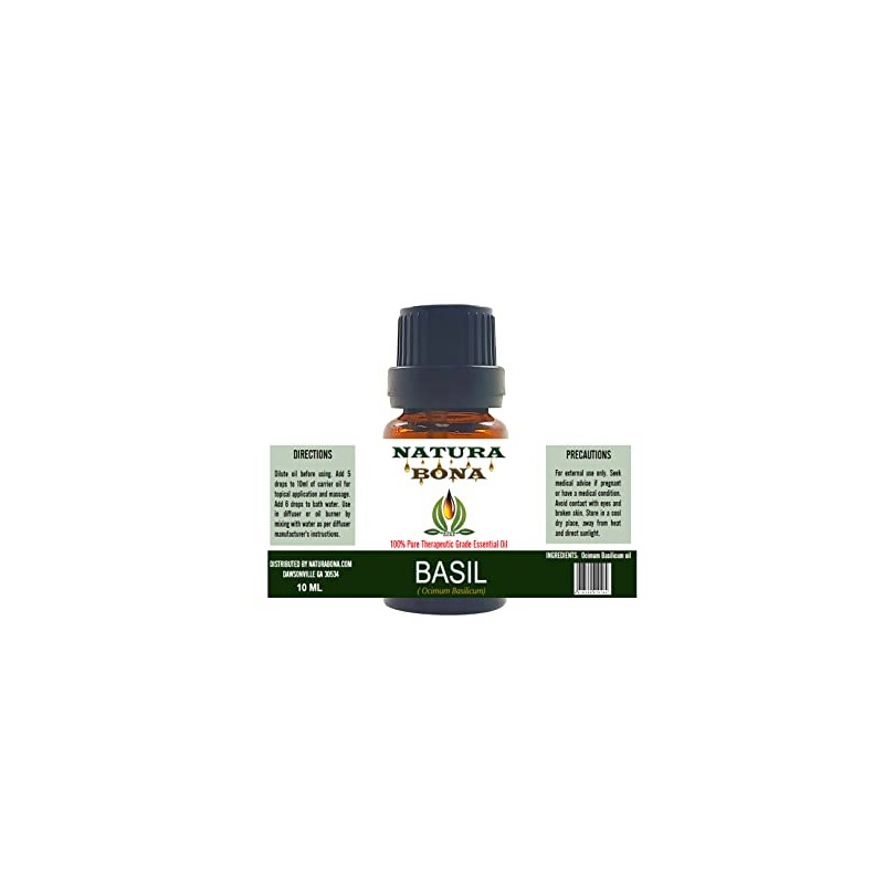 Natura Bona Therapeutic Grade Aromatherapy Essential Oil for Diffusers, 10ml Amber Glass Bottle (Basil)