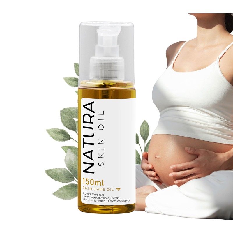 Natura Skin Oil 150ml. Aceite Corporal, Disminuye Estrías y Cicatrices, Ideal para Uso durante el Embarazo, Hidrata Profundamente la Piel Seca, No es Grasoso, Con Aceites de Rosa Mosqueta, Aguacate, Almendra, Semilla, Vitamina A, Vitamina E. Skin Care Re