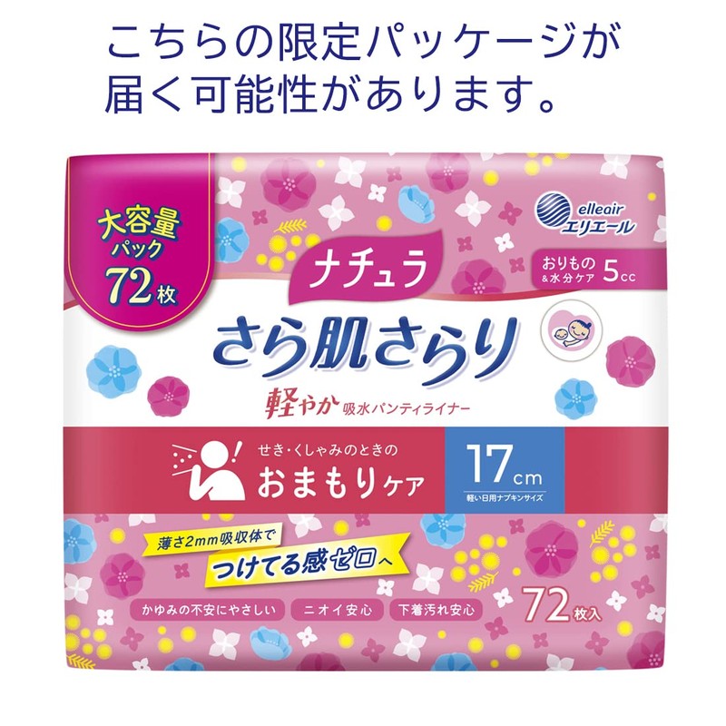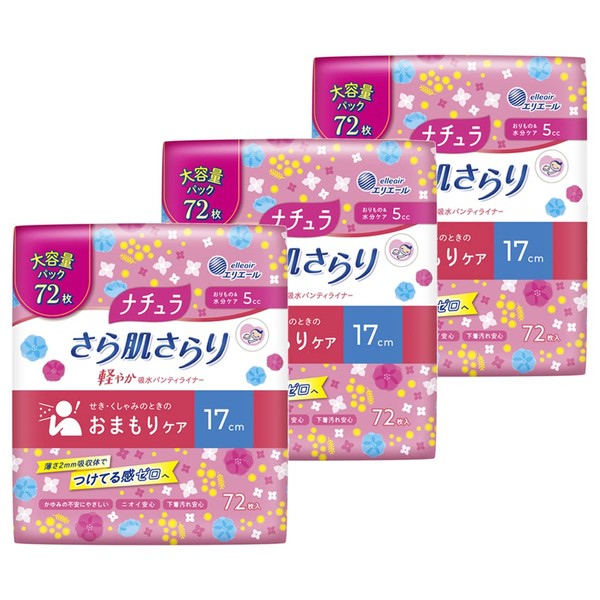 Natura Smooth Skin Lightweight Absorbent Panty Liner, 0.2 fl oz (5 cc), 6.7 inches (17 cm), 216 Pieces (72 Sheets x 3 Packs), Large Capacity, Bulk Purchase