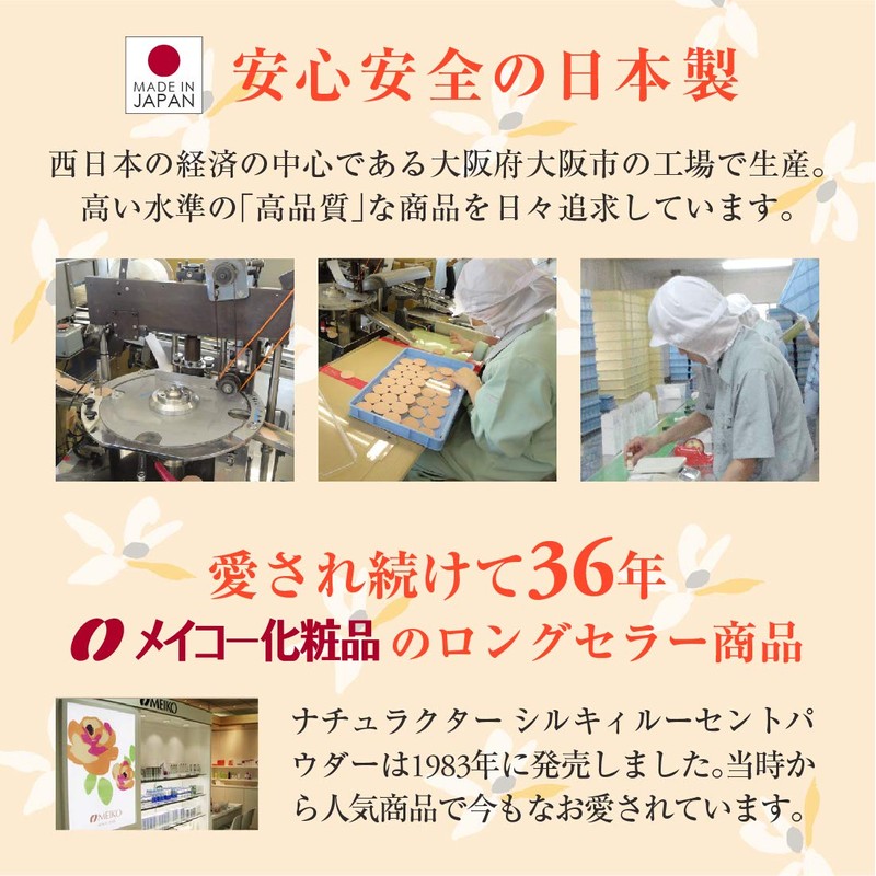 The best selling finishing loose powder in Japan, Meiko Naturactor Silky Lucent gives a flawless and smooth finish that hides fine lines, pores and other skin imperfections. It is the number 1 choice among Japanese makeup artists! A little of this product goes a long way and is perfect as a finishing powder to remove that greasy and oily feel left by liquid and cream foundation. Lasts all day and enhance the effect of your regular face concealers and foundation. Best used with other Naturactor products such as Cover Face, Summer Cake, Pressed Powder and Powder Foundation. Shade Guide 31: Suitable for light skin tone (cover face 130,140) 41: Suitable for fair skin tone (cover face 140,141 and 151) 51: Suitable for medium skin tone (cover face 151)