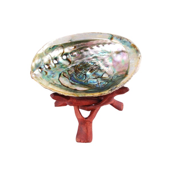 - COMPLETE SET: Includes both a medium-sized abalone shell for burning herbs and a decorative wooden tripod stand for stable display