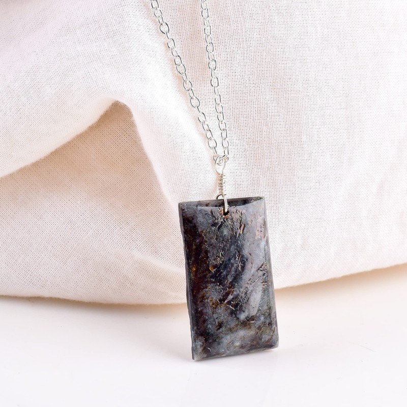 Natural Astrophyllite Bar Crystals Pendant Necklace, Rectangle Cabochon Gemstone, Energy Healing Crystals, Birthday, Gift for Her, Gemstone Jewelry 18 inch AAA+ Quality (astrophyllite 2)