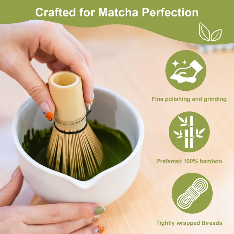 - 【QUALITY WORK】:Carefully crafted with bamboo matcha whisk, the matcha whisk is made from a semi-manual production process that provides a flawless finish and minimal dirt production. It has been designed to last to withstand frequent use, reducing the risk of damage or breakage, thus enhancing your overall matcha fun.