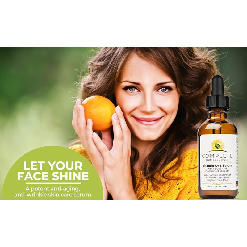 - GET A FLAWLESS, AGELESS LOOK, NATURALLY: Our dual purpose facial serum protects by day and repairs at night, contains Vitamin C, an antioxidant that evens skin tone and helps build collagen. Also contains Vitamin E and Ferulic Acid, used to extend the life and effectiveness of Vitamin C, this is definitively a revolutionary formula! Our Complete Skin Solutions Serum will help you renew and defend skin from visible signs of aging; you will love looking at yourself in the mirror!