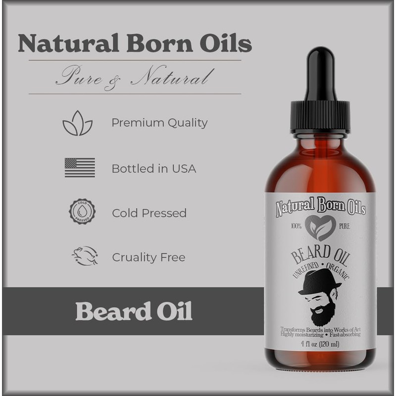Natural Born Oils Beard Oil, 4oz, Organic, Cold-Pressed, Vitamin-Rich, Perfect for Beard Grooming, Skin Nourishment