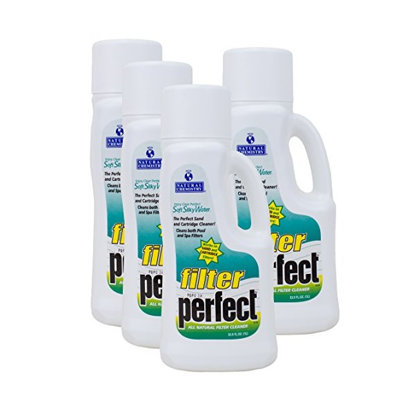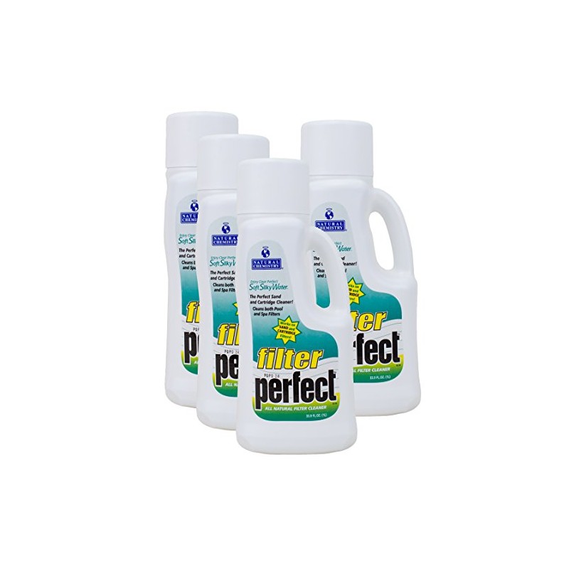 Details: Natural Chemistry's Filter Perfect gives pool and spa owners a powerful , concentrated cleaner to cut through the thickest, nastiest oil, grease and scum build-up on all pool and spa filters, including sand, diatomaceous earth, and cartridge styles. Filter Perfect's chemical solution vastly improves filter efficiency by restoring lost surface area, clearing water and improving overall pool and spa health. This cleaner is compatible with chlorine, bromine, and other alternative sanitizing systems. Product Dosage 1 L per filter cleaning.
