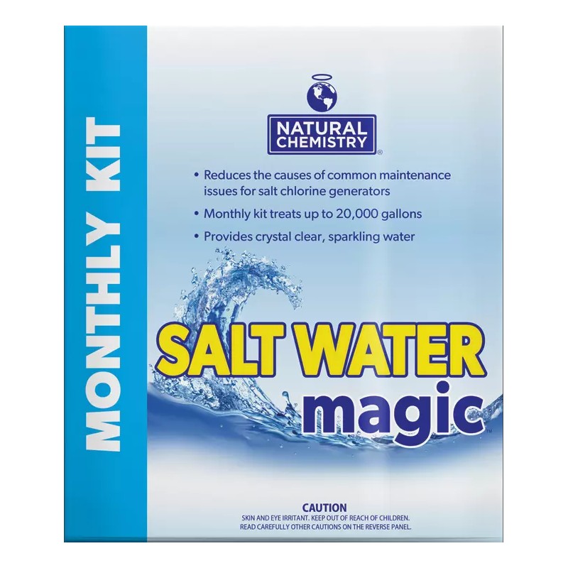 - [Description]: Features unique technologies and a monthly, easy-to-follow kit containing salt water magic liquid, cell protect benefits, phosphate removal, natural enzymes, and efficiency in treating up to 20,000 gallons of water.