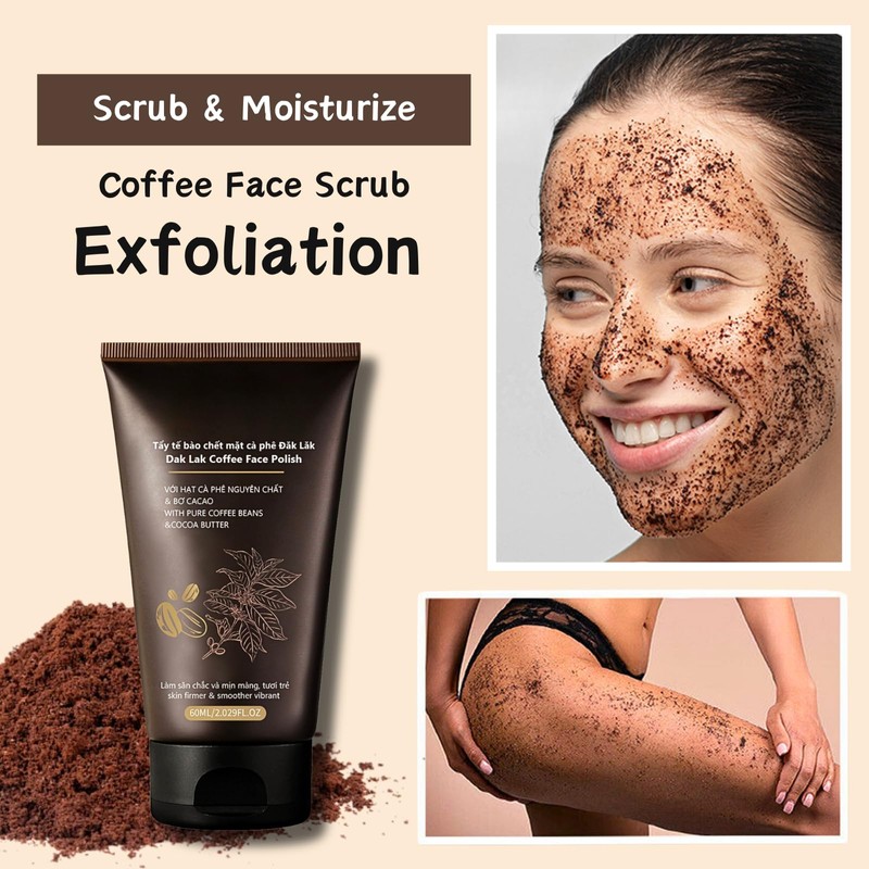 - đżăNOURISHING MOISTURIZERăOur coffee exfoliating face scrub help you exfoliate the body while nourishing your skin. The natural and delicate scrub particles help you exfoliate without damaging the skin barrier. Coffee body exfoliator scrub is added with nourishing ingredient to keep your skin hydrated.