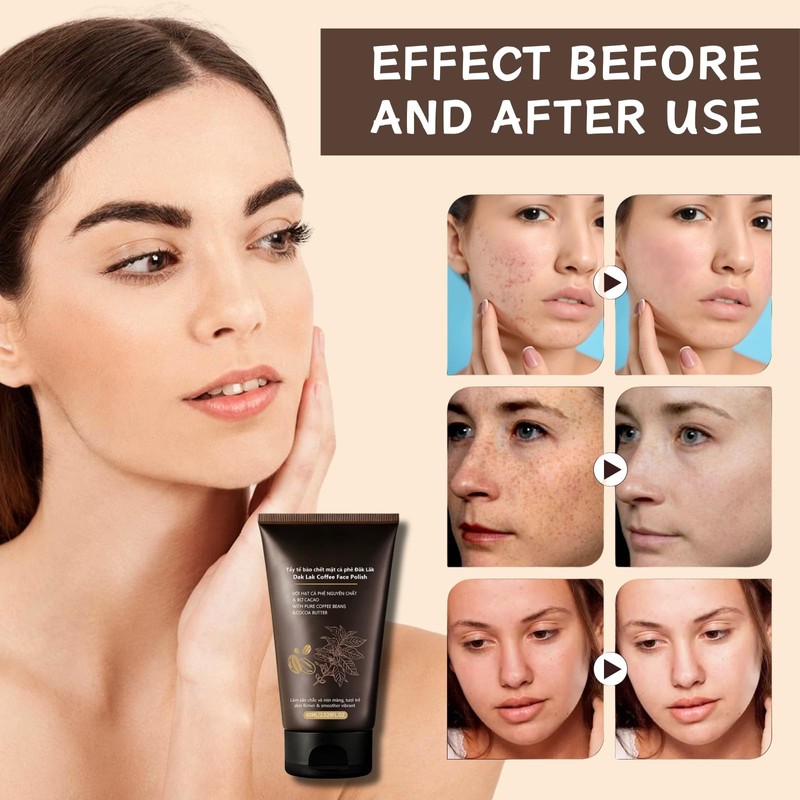 Coffee Face Exfoliator, removes dead skin, soothes dry skin, moisturizes, provides deep nourishment to the skin, restores smoothness and brilliance, andreveals a natupal and healthy glow.