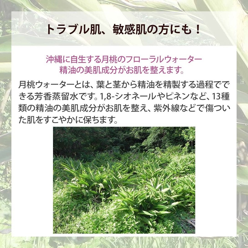 Moon peach is a plant of the ginger family, native to Okinawa. It is rich in polyphenols and has been used as a healthy tea, but it has been noticed as a cosmetic ingredient.