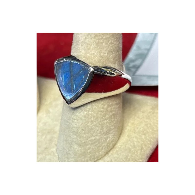 The ring is designed for men and has a sleek and stylish look. The blue Labradorite stone adds a pop of color to the ring and the fire main stone color makes it stand out. This ring is perfect for anyone who wants to add a touch of elegance to their wardrobe.