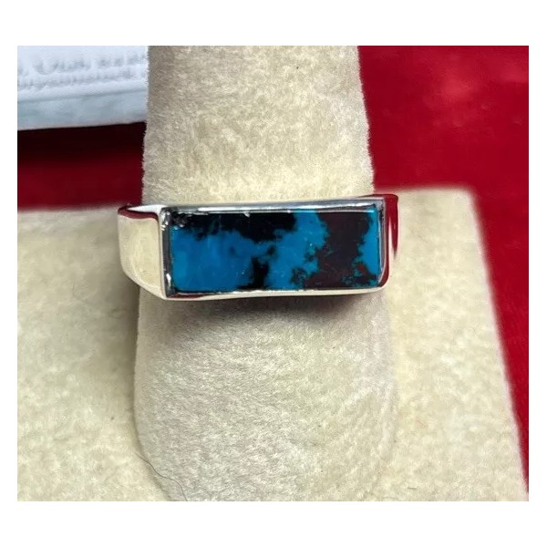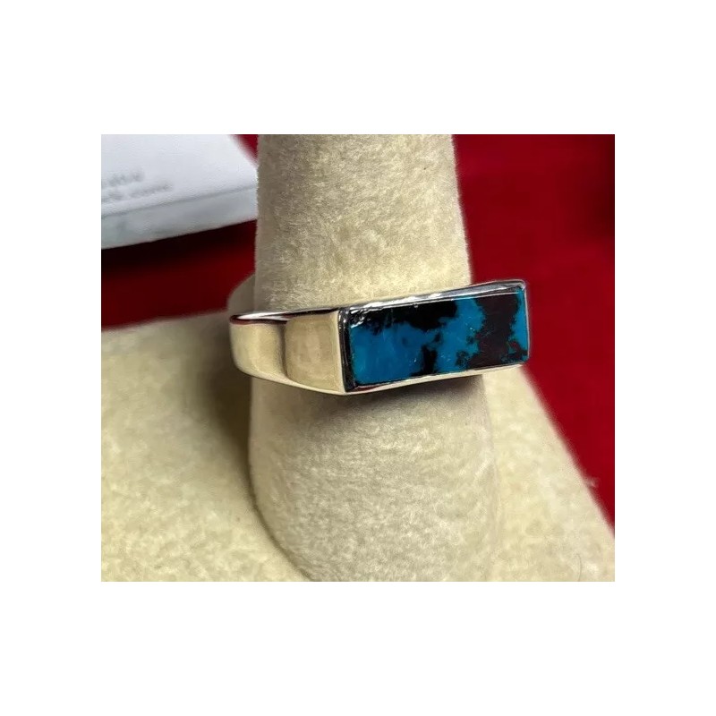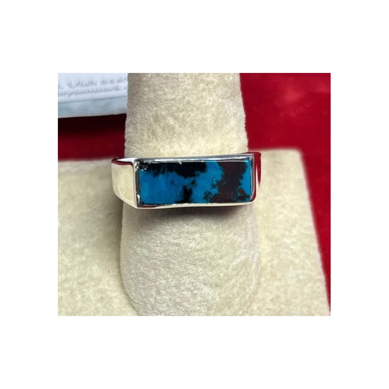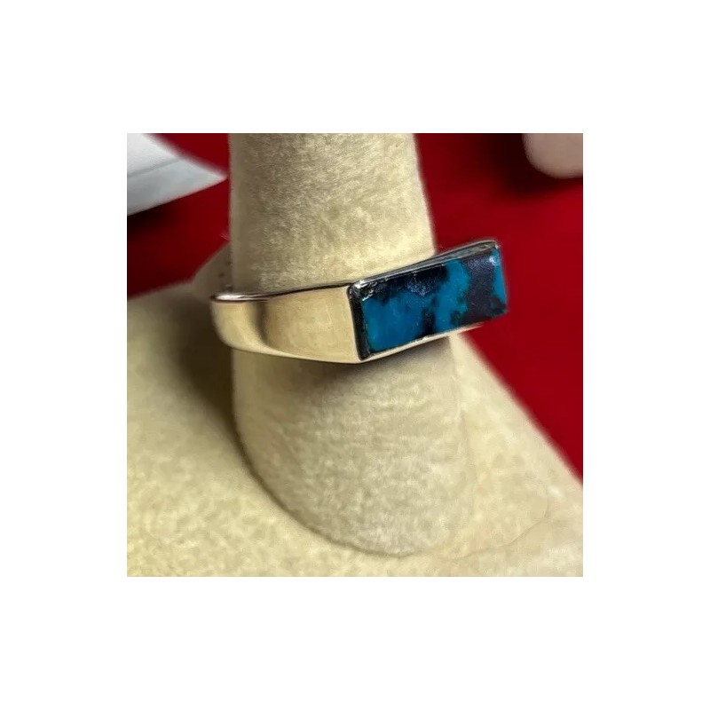 This exquisite men's ring is made of high-quality sterling silver and features a stunning blue shattuckite stone. Crafted by Natural Creations, this ring is a perfect addition to any jewelry collection. The ring is available in size 11 and is designed to fit comfortably on any finger. The blue color of the stone adds a touch of elegance to the ring, making it perfect for any occasion. The ring is perfect for men who appreciate the beauty of natural stones and want to add a unique piece to their collection.