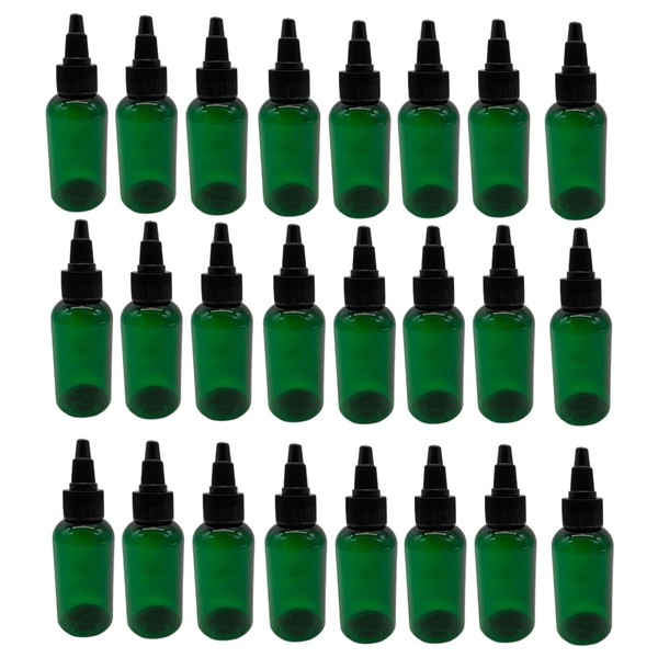 Natural Farms Botellas Boston verdes de 2 onzas – Paquete de 24 tapas negras con cierre abierto
