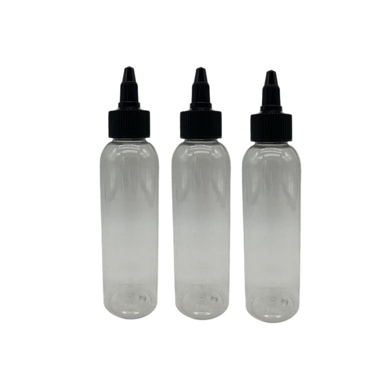 Natural Farms Botellas transparentes Cosmo sin BPA de 4 onzas, paquete de 3 recipientes vacíos rellenables, aceites esenciales, para el cabello, aromaterapia, tapa negra para abrir/cerrar, fabricadas en los Estados Unidos