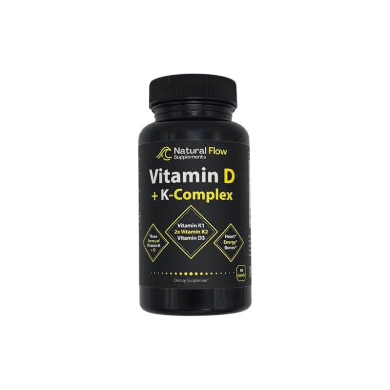 Natural Flow Supplements Vitamin D3 with K2 and K1 Supplement - Natural Flow Vitamin D3 and K Complex - D3 5000iu with Vitamin K2 MK4 + MK7 and K1 for Bone, Heart, and Immune Support - 60 Capsules