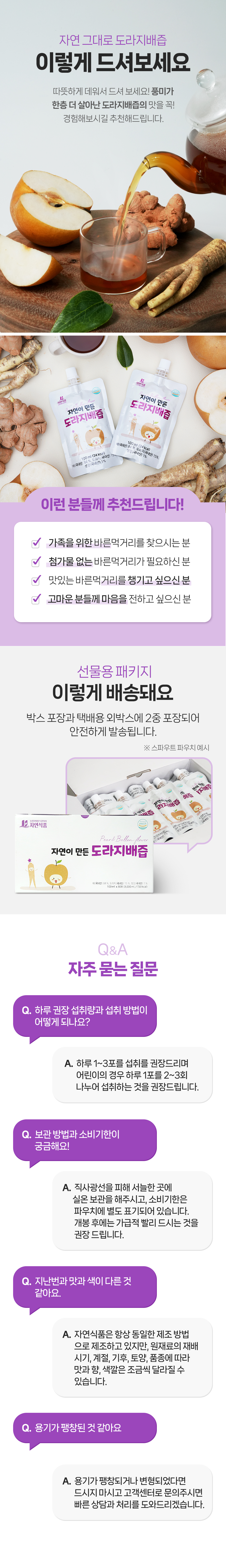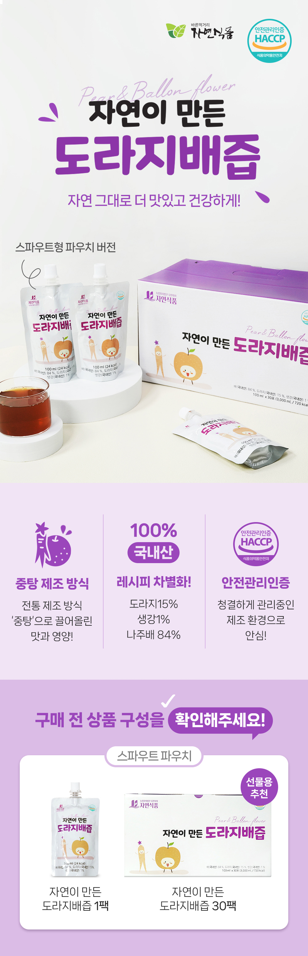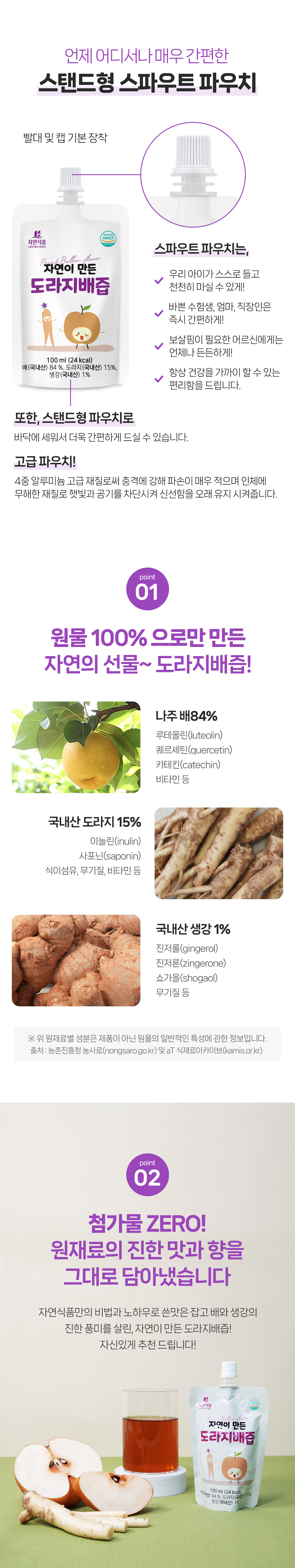 자연식품 자연이 만든 도라지배즙 스파우트 100ml x 120팩