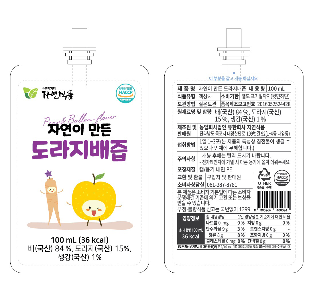자연식품 자연이 만든 도라지배즙 스파우트 100ml x 30팩