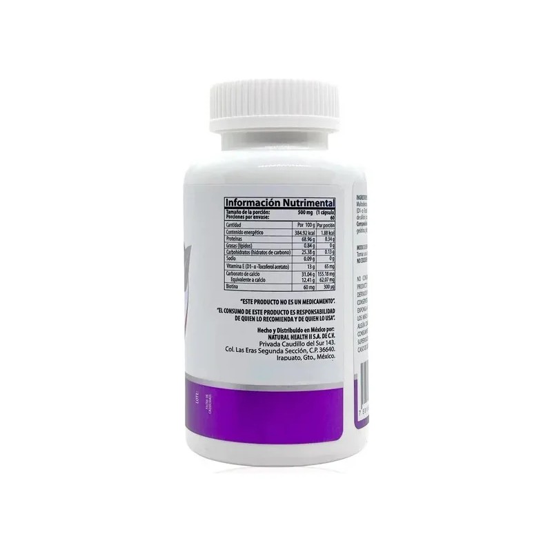 Potencia tu bienestar y vitalidad con Biotina, Vitamina E y Calcio de Natural Health, un suplemento diseñado para apoyar tu nutrición diaria.