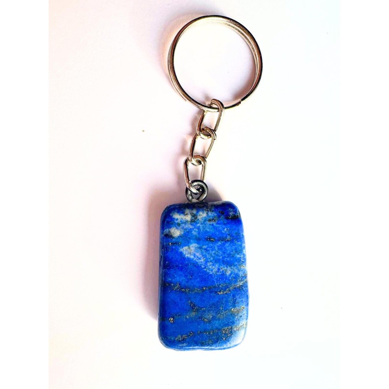 - GENUINE GEMSTONE: Natural Lapis Lazuli stone Keychain or Keyring featuring distinctive deep blue colouring with characteristic grey and white mineral inclusions