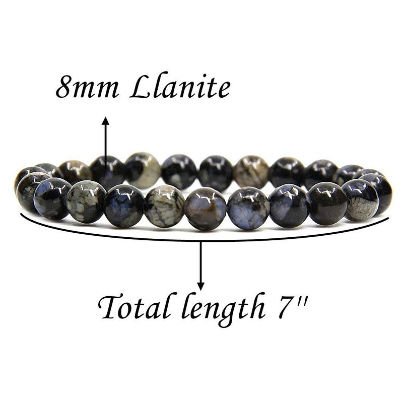 Natural Llanite Gemstone 8mm Round Beads Stretch Bracelet 7" Unisex